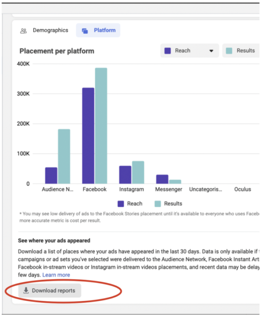 Step 2: Go to the Platform section and select “Download reports“.